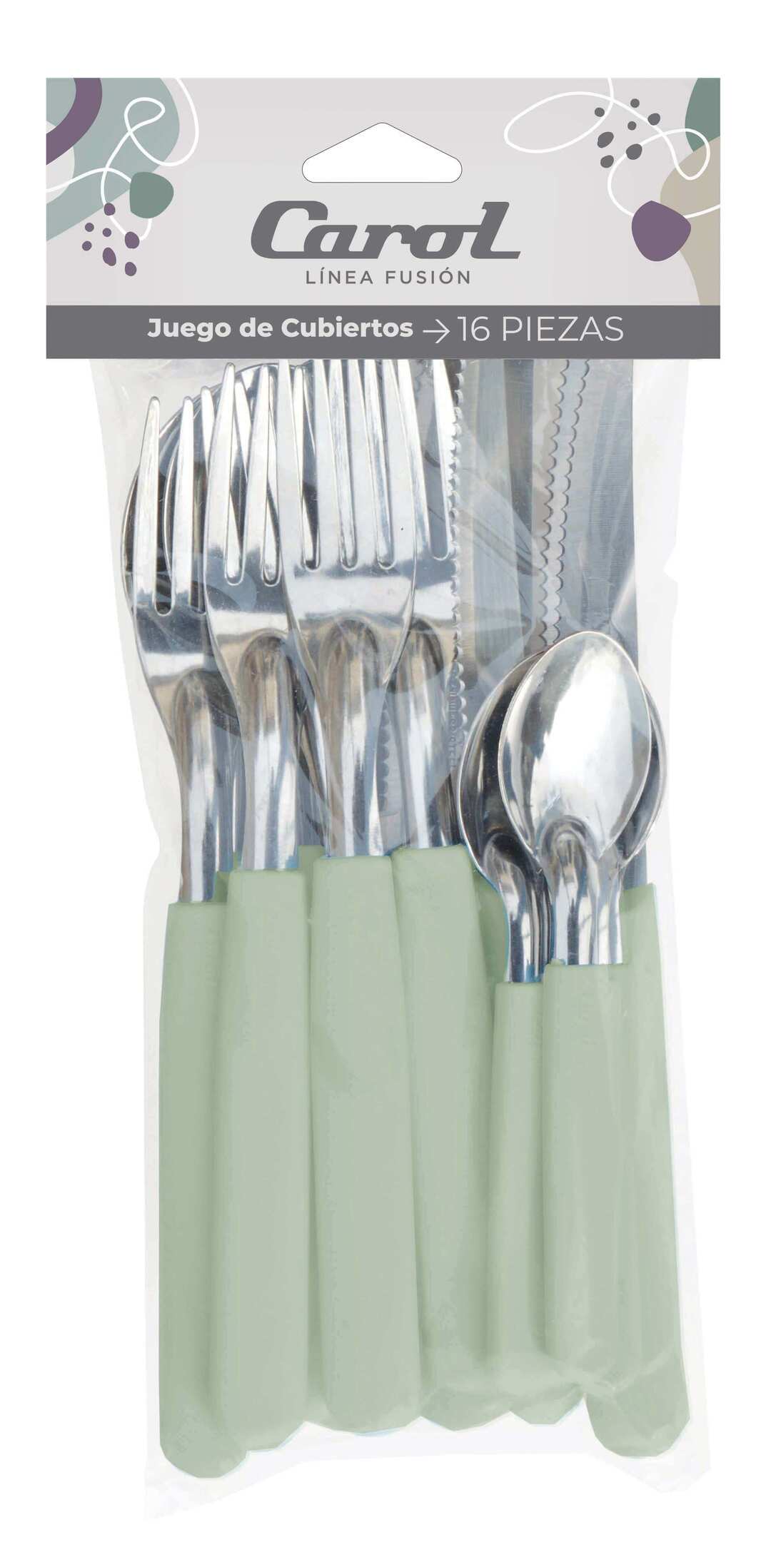 Juego de cubiertos 16 piezas, bolsa y carpa (41016) CAROL