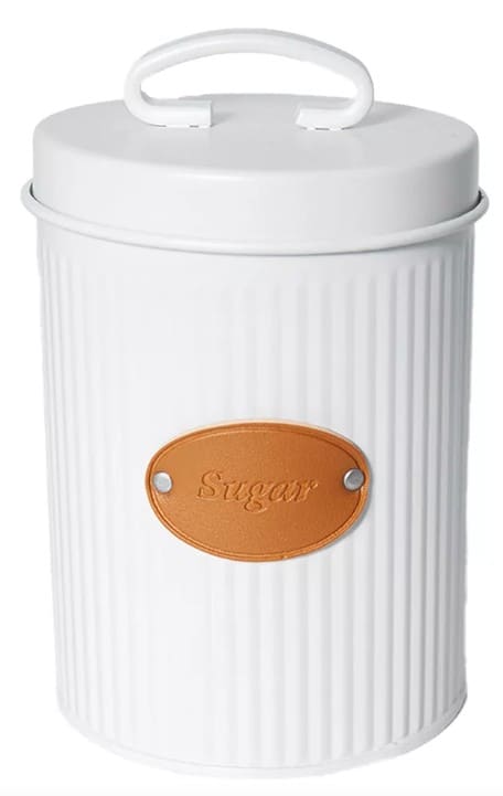 Lata para azucar 15x11cm Linea Blanca c/Rotulo en Cuero c/Tachas (72223) CAROL