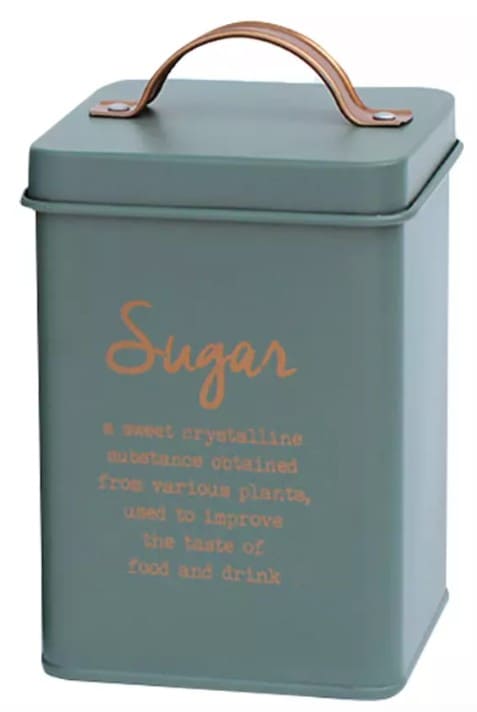 Lata para azucar 14x11x11cm Linea Verde c/manija Inscripcion Cobre (71141) CAROL