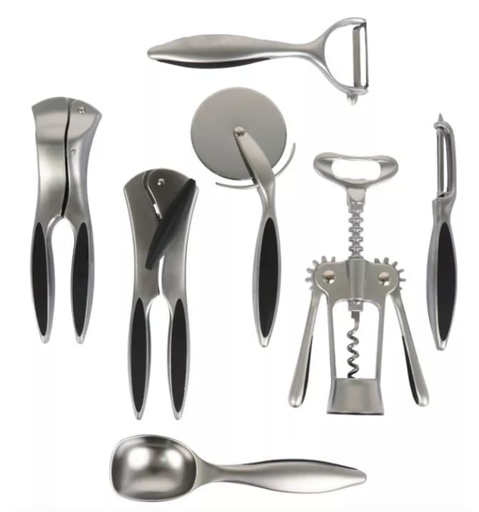 SET 7 PZAS.: Pica Ajo - Abrelata - Corta Pizza - Sacacorcho Aletas - Pelapapas - Cuchara Helado - Pelapapas Horizontal (91707) CAROL