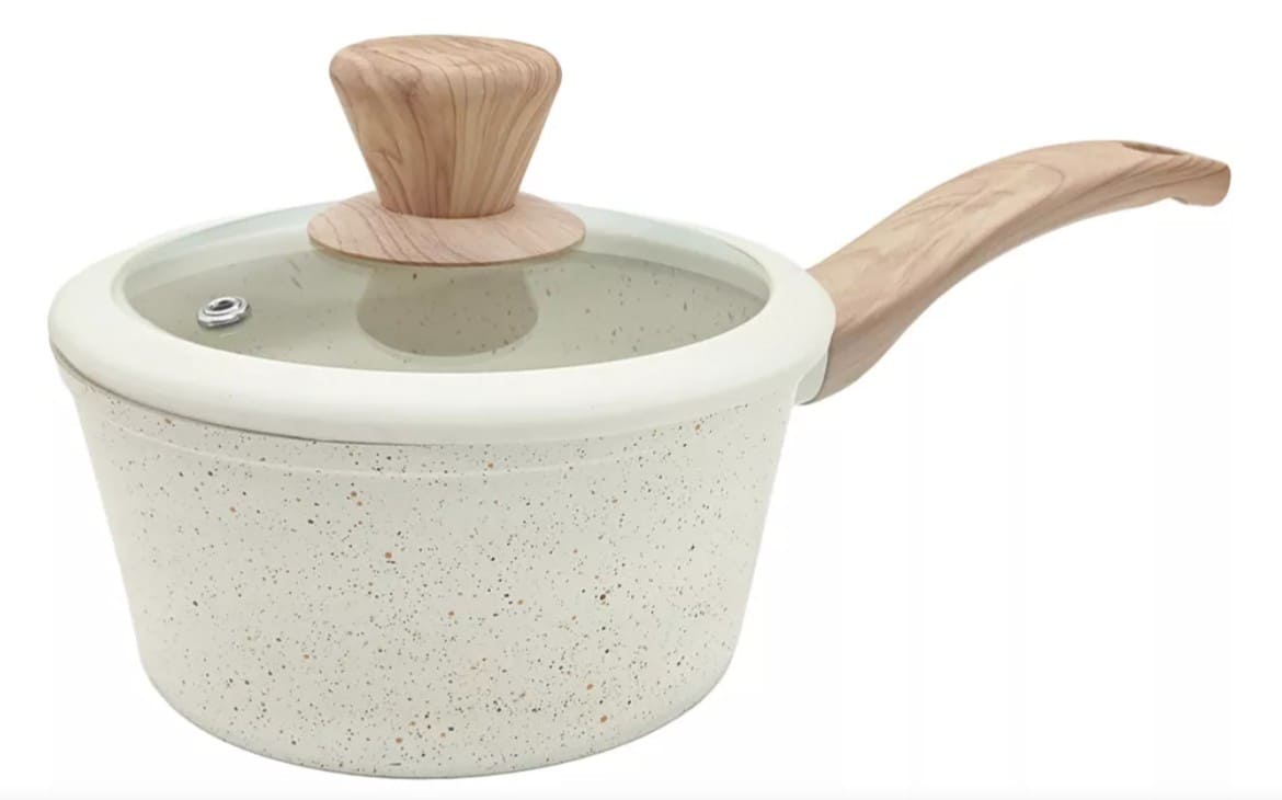 Juego de Bateria 5 piezas: Cacerola 18cm - Sarten 20cm - Sarten 26cm y Mango Extraible Con caja color (68005BGR) Beige CAROL