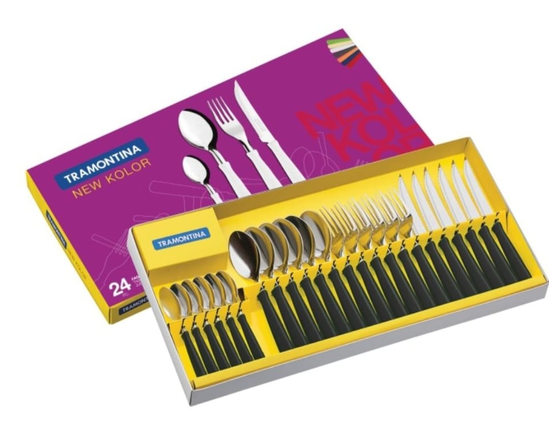 Juego Cubiertos 24Pzas New Kolor Negro (23199/062) TRAMONTINA