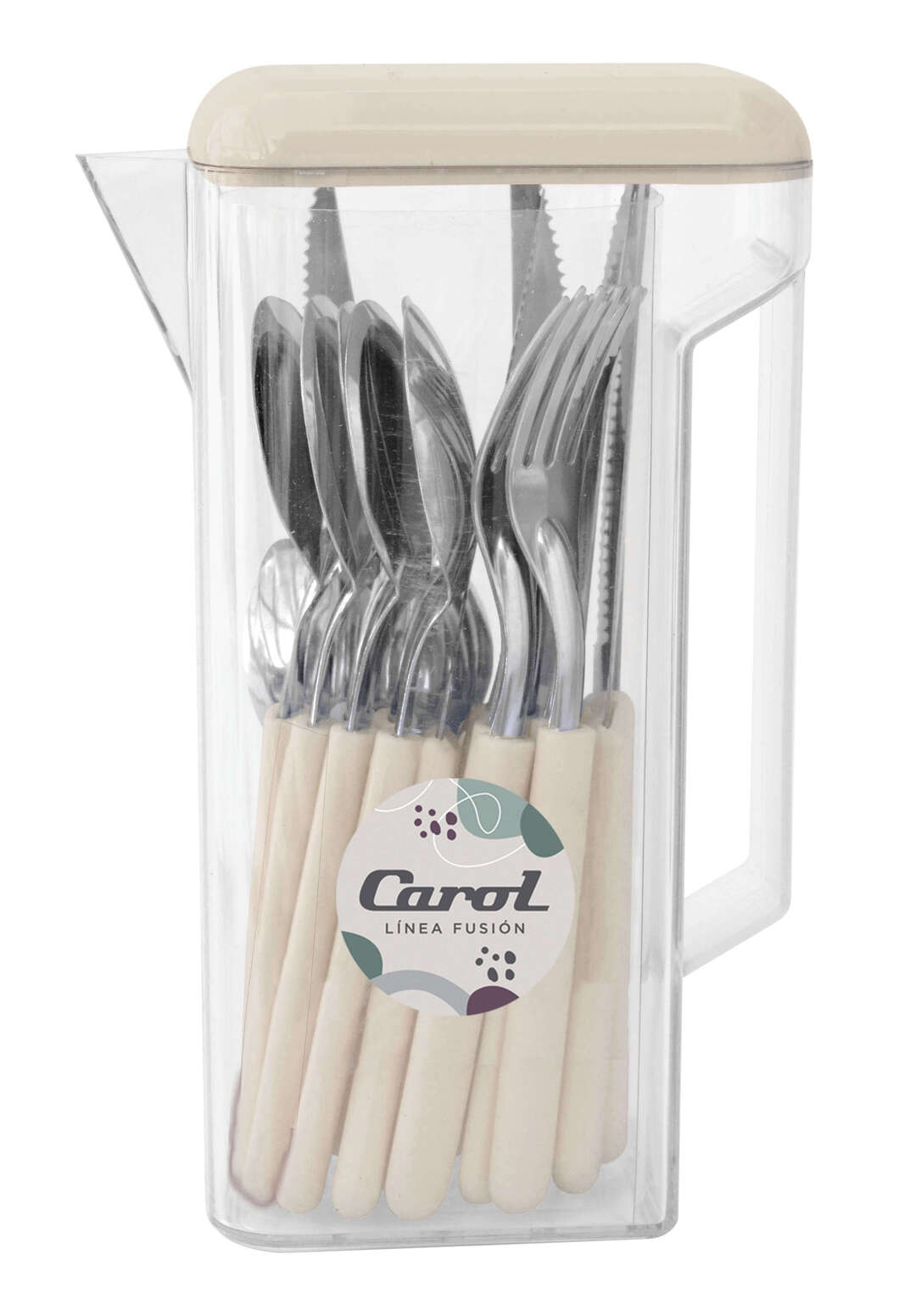 Juego de cubiertos 24 piezas, en jarra con tapa color (44024) CAROL