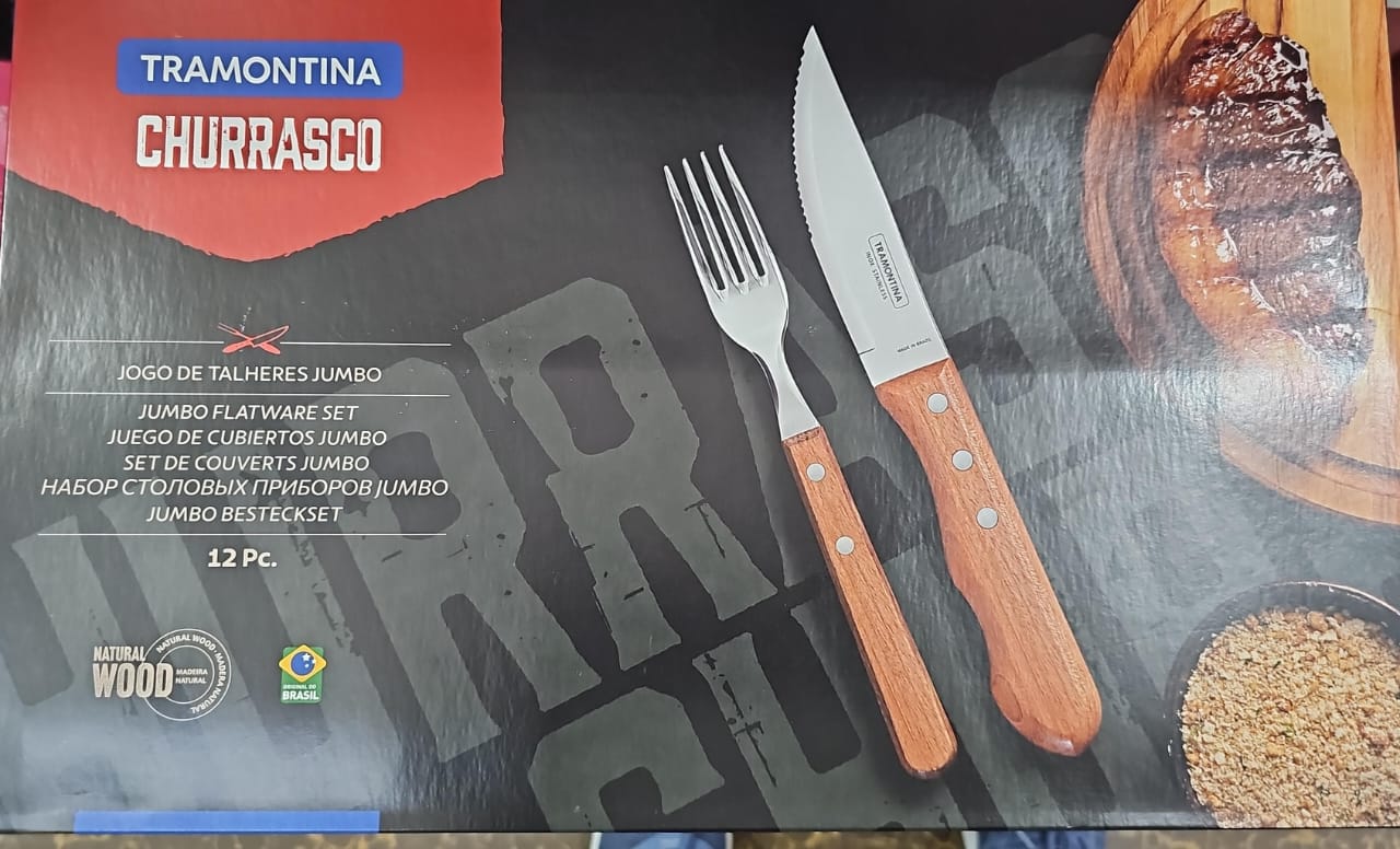 Juego Cubiertos 12Pzas Churrasco Jumbo Natural Wood (22399/063) TRAMONTINA