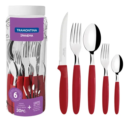 Juego Cubiertos 30Pzas Ipanema Tubo Rojo (23398/788) TRAMONTINA
