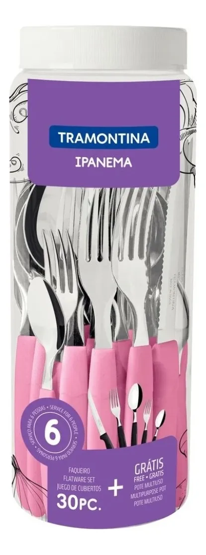 Juego Cubiertos 30Pzas Ipanema Tubo Rosa (23398/488) TRAMONTINA