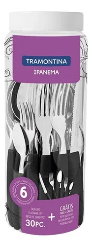 Juego Cubiertos 30Pzas Ipanema Tubo Negro (23398/788) TRAMONTINA