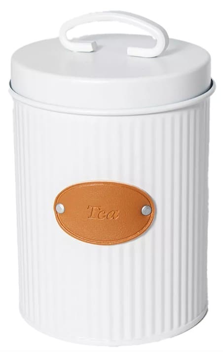 Lata para te 15x11cm Linea Blanca c/Rotulo en Cuero c/Tachas (71121) CAROL