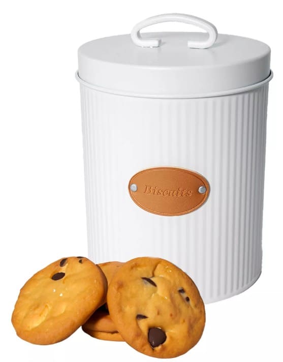 Lata galletitas 17x13.5cm Linea Blanca c/Rotulo en Cuero c/Tachas (71124) CAROL