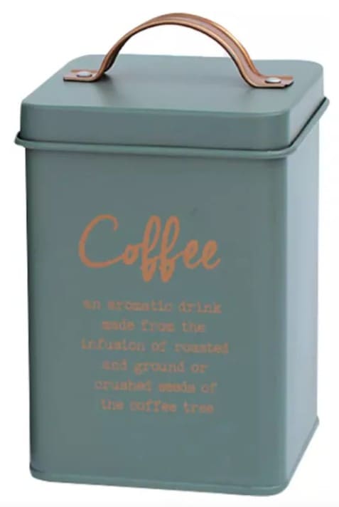 Lata para cafe 14x11x11cm Linea Verde c/manija Inscripcion Cobre (71140) CAROL
