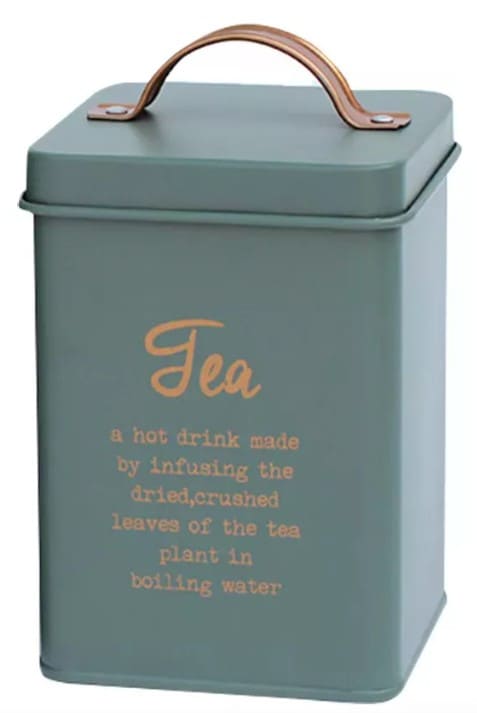 Lata para te 14x11x11cm Linea Verde c/manija Inscripcion Cobre (71139) CAROL