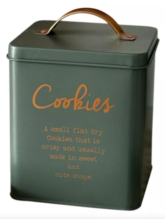 Lata galletitas 16x14x14cm Linea Verde c/manija Inscripcion Cobre (71142) CAROL