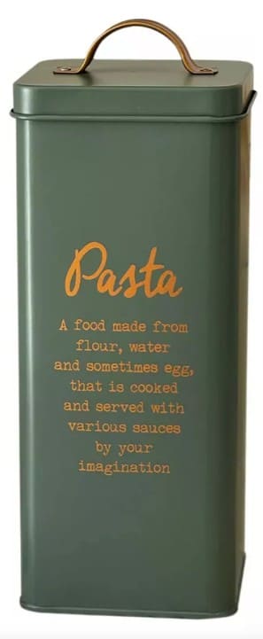 Lata para fideos 27x11x11cm Linea Verde c/manija Inscripcion Cobre (71143) CAROL